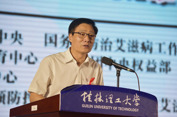 广西卫计委艾滋病防控干预处陈国堂副处长在讲话中从艾滋病的危害,我区当前艾滋病疫情发展形势,高校艾滋病疫情新问题和艾滋病的传播与防控等方面为广大师生进行了阐述,倡导广大师生要珍爱生命,远离艾滋,保持健康文明的生活方式;大力弘扬“红丝带”精神和志愿服务精神,为艾滋病防范事业做出自己应有的贡献。